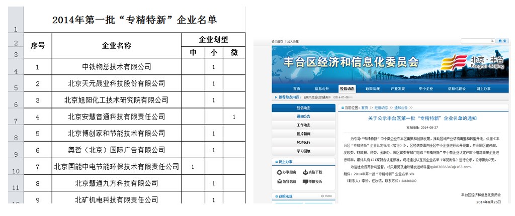 日前,我公司已通過豐臺區經濟和信息化委員會認定,被評為 “專精特新”企業。